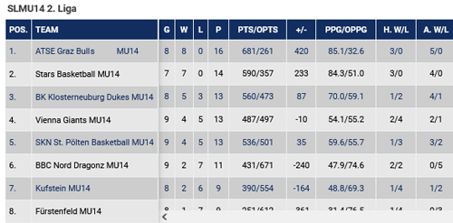 Am Samstag 3. Februar fand dann das nächste Superliga 14 Spiel in Kufstein statt. Nach langer Anreise mit dem Zug waren die Steirer bestens ausgeruht und überzeugten auf allen Positionen. Am Ende stand ein klarer 117:38 Sieg zu Buche, der dem Kooperationsteam Rang 1 in der Superligatabelle einbrachte!