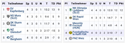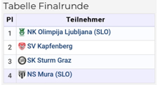 Zehn Mannschaften umfasste das Teilnehmerfeld – darunter namhafte Fußballvereine wie Rapid Wien, Sturm Graz und Olimpija Ljublijana.