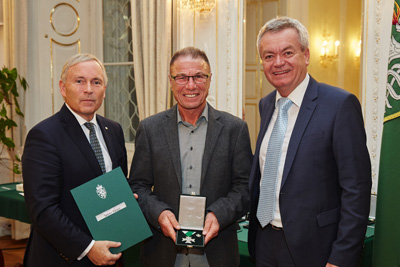 Bericht: Reinhard Pöllendorfer Bildquelle: Land Steiermark Abteilung 12 Wirtschaft, Tourismus, Sport - Sandra Weidacher 0316 877-4384 Diese E-Mail-Adresse ist vor Spambots geschützt! Zur Anzeige muss JavaScript eingeschaltet sein! / Foto Melbinger Bildinfo: Christian Purrer, Sandor Farago und Landesrat Anton Lang bei der Verleihung
