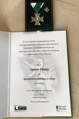 Am 16. November 2017 wurden die Sportehrenzeichen des Landes Steiermark an ehrenamtliche SportfunktionärInnen für ihre Verdienste um den steirischen Sport verliehen. Sandor Farago - Fußball-Spartenleiter des Nachwuchsmodell Kapfenberg – wurde für seine lebenslange Arbeit im steirischen Fußball geehrt!