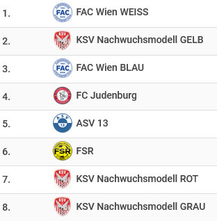 Beide Heimteams trafen dann im Halbfinale des unteren Tableaus aufeinander, wo Team Rot knapp mit 1:0 gewinnen konnte und dann mit einem weiteren 1:0 Sieg über SG Kainachtal Fünfte wurde.