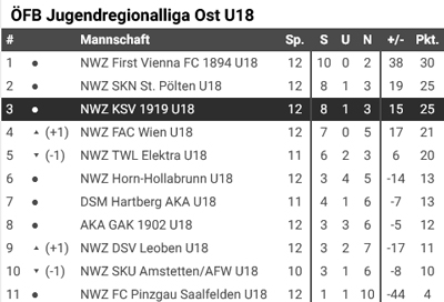 NWZ KSV 1919 U18 vs. DSM Hartberg AKA U18 6:1 (5:0) Tore Kapfenberg: Alexander Prietl (6‘), Fabio Kräutler (17‘, 72‘), Faris Kavaz (18‘), Antonio Popic (30‘), Jonas Gruber (36‘) Tor Hartberg: Paul Kargl (76‘)