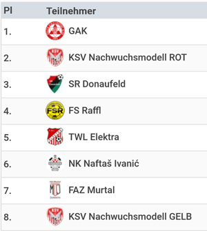 Im weiteren Turnierverlauf musste das gelbe Team dann weitere Niederlagen im Viertelfinale gegen KSV Rot (0:3), im Halbfinale des unteren Playoffs gegen NK Naftaš Ivanić (0:2) und im Spiel um Platz 7 gegen das FAZ Murtal mit 0:1 hinnehmen.