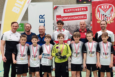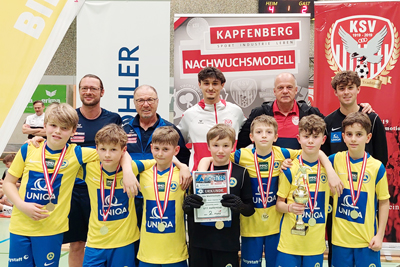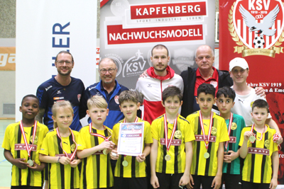 8. Platz KSV Nachwuchsmodell GELB Vorne v.l.: Fabian Vasilache, Teodor Stanaravic, Bledor Kapitaj, Arian Selimi, Vasilij Kusic, Henry Schober, Leo Riegel, X, Deniz Bulduk-Angerer, Petar Dosen / Trainer Daniel Braunhuber