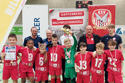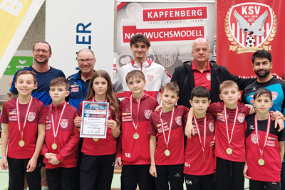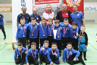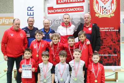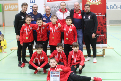 Das Team KSV Nachwuchsmodell ROT gewann die Gruppe BÖHLER mit 3 Siegen und einem Torverhältnis von 7:2.