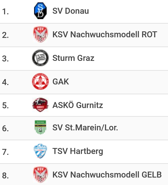 Auch das Halbfinale im unteren Tableau ging dann mit 0:1 gegen SC Floridsdorf verloren, gegen die man in der Gruppe noch 2:1 gewonnen hatte. Abschließend holten die KSV-Nachwuchsmodellspieler mit einem 1:0 über den WAC noch Platz 7.