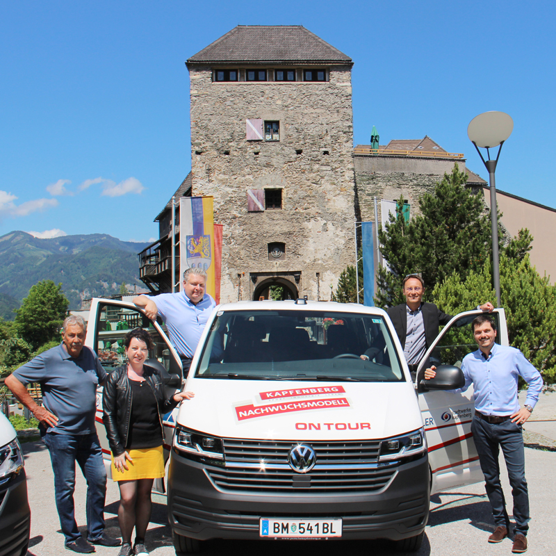Hoch über Kapfenberg, vor der geschichtsträchtigen und imposanten Burg, fand heute die offizielle Übergabe des neuen VW-Fuhrparks an das Nachwuchsmodell Kapfenberg statt. Mit der neuen Beklebung und dem Motto „ON TOUR“ soll die Dynamik des Nachwuchsmodells, seine einzelnen Sportarten mit ihren Basisvereinen, sowie der hohe Aufwand, den Athlet:innen und Trainer:innen auf sich nehmen, um zu den unzähligen Wettkampforten zu gelangen, symbolisiert werden!
