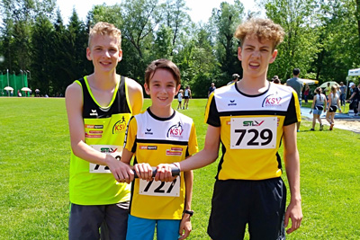 Die Burschen mit Elias Pölzl, Samuel Trois und Anton Seiler errangen über 3x1000 in der U18 mit 9:55,74 Rang 2.