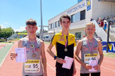 Die Staffel-Bronzemedaille über 3x1000m U18 holten Elias Pölzl, sowie Luca und Noah Kollmann bei den als Rahmenbewerb ausgetragenen österreichischen Jugend Staffelmeisterschaften mit einer Zeit von 9:20,72min.